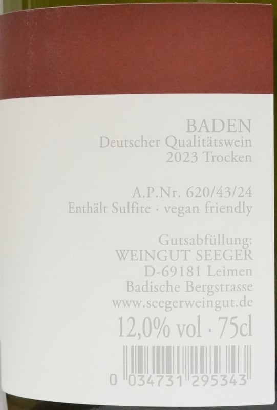 【 独占輸入 】 ジーガー グラウアー ブルグンダー ピノグリ 2023 Seeger Grauer Burgunder