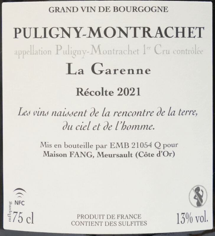 【 限定5本 希少バックヴィンテージ 】 Maison FANG ピュリニー モンラッシェ プルミエクリュ "La Garenne" 2021 メゾン ファン