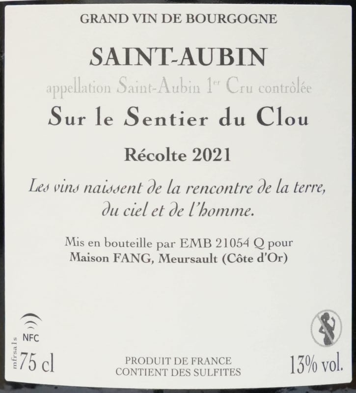 【 限定15本 】 Maison FANG サン トーバン プルミエクリュ "Sur le sentier du Clou" ルージュ 2021 メゾン ファン 赤ワイン